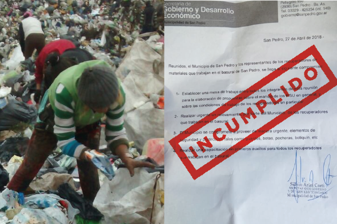 The Federation of Waste Pickers of Argentina (FACCYR) is working to highlight the neglect of the barrio La Tosquera and the families who live close to the open dump in San Pedro, Province of Buenos Aires. They demand improvements in waste pickers working conditions. For this reason, they marched in June demanding the fulfillment of the agreement made by the local government. The government still has not adopted any concrete measures.