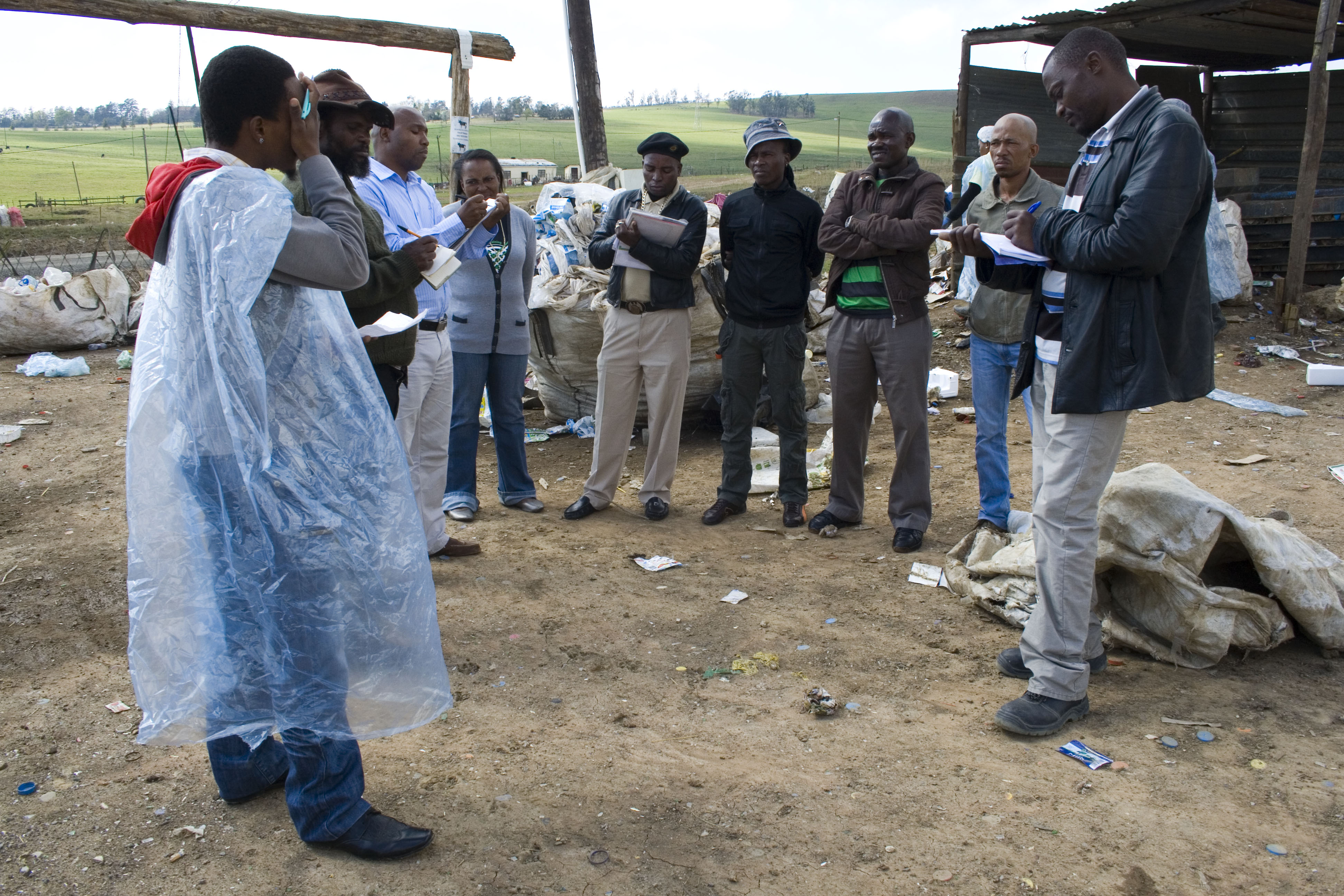 Beginning at Mooi River, members of SAWPA’s national committee and environmental justice NGO groundWork [2] met with the local waste pickers at the landfill site here to view the progress made on the material recovery facility (MRF) [3] that is being built by the municipality for the 11 member waste picker cooperative. The MRF will mean that more recycling will take place, and thus, more income will be generated by the waste pickers. Space at the landfill will also remain open, potentially giving the site a longer existence, as well as ensuring a cleaner environment.