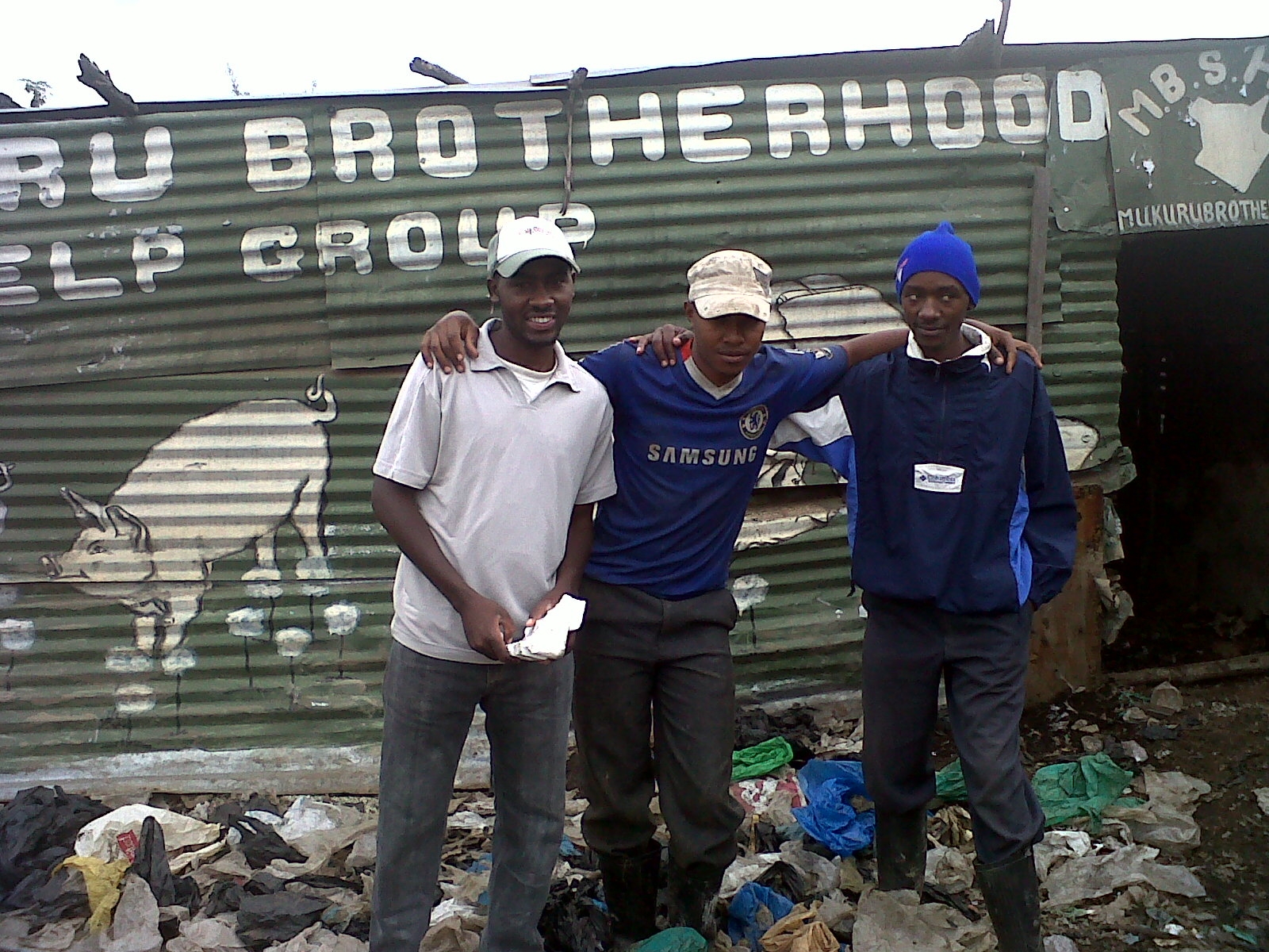 Mukuru Brotherhood official outside the pig project structure. Photo credit: Elaine Jones.