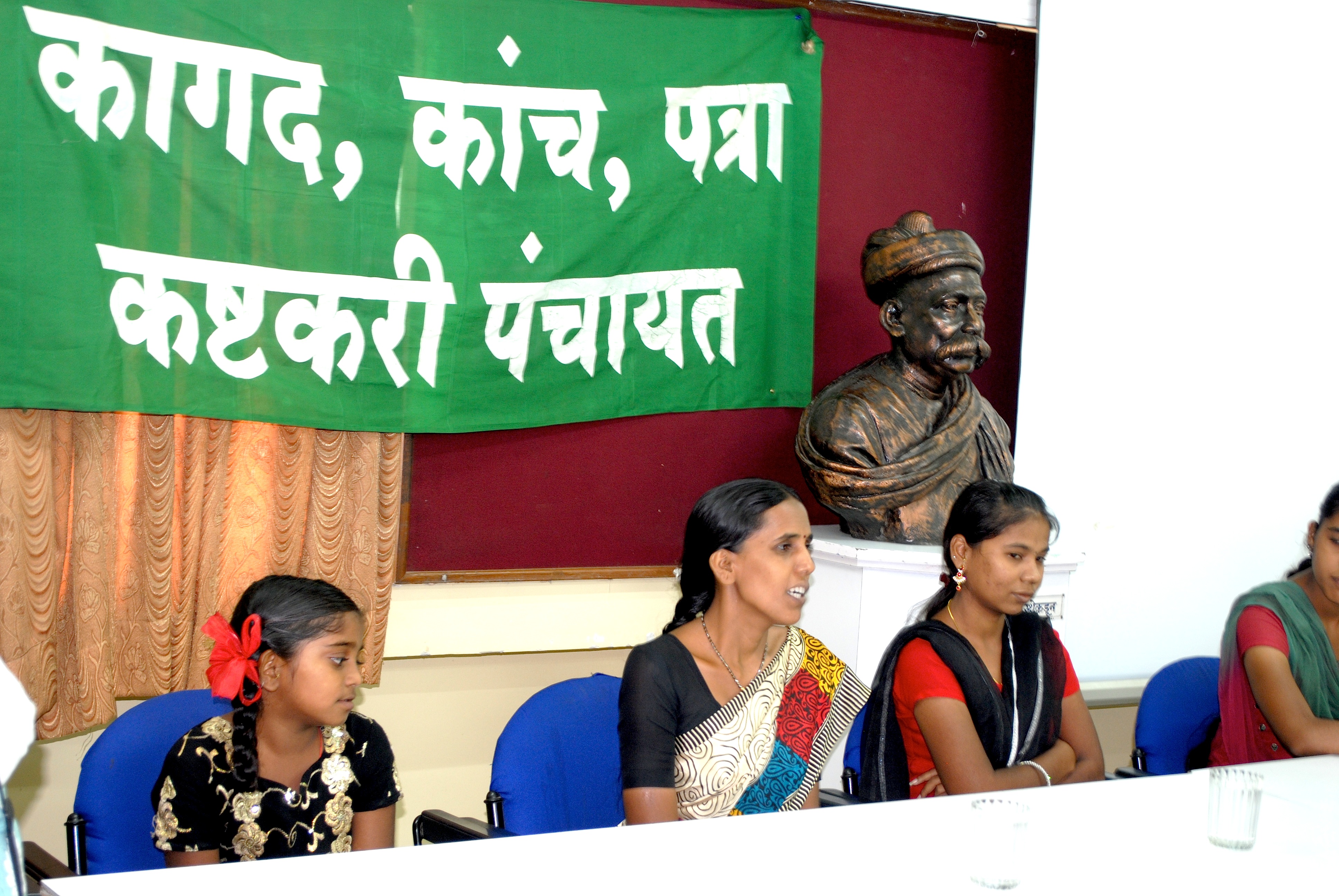 “When parents are doing everything possible to send their children to school, the government has to do as much to ensure support,” said labor organizer Dr. Baba Adhav. A delegation led by Dr. Adhav met with the District Collector to discuss the issue with him. The delegation also consisted of Mohan Nanavre, president of KKPKP; Poornima Chikarmane, professor at SNDT University, as well as KKPKP members. The program concluded with members taking an oath to keep their children in school whatever the circumstances and also to put an end to child labor within the waste picking sector.