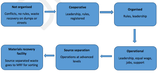 These are initiatives by waste pickers who are either working in cooperatives or funded to work as cooperatives doing recycling in their localities. Many of these groups of waste pickers have come a long way from being disorganised to a formal registered cooperative.