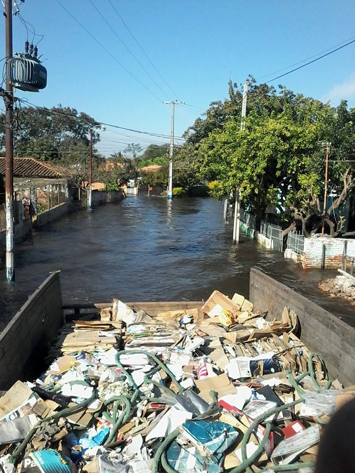 In the month of June, many residents of the Bañado Tacumbú neighborhood of Asunción, Paraguay, had to evacuate their homes because of flooding. The flood has affected about 5,000 families, 80 percent of which are waste picker families, according to Pedro Ramon Caballero Quintana, a waste picker leader in Asunción. They have lost almost all of their recyclable materials as well as their possessions in their homes. Quintana has documented the impact of the flood with facebook posts and has asked for support. He gave an update at the end of June, saying that the rains have continued after the flooding, and many waste pickers are not able to work.