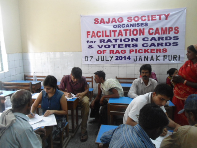 We facilitated thousand families for food security and enrollment of 2500 rag-pickers to the electoral rolls of Delhi. For this, we held camps in government schools located nearby rag-picker clusters. In these camps National Campaign for People’s Right to Information (NCPRI), and Mazdoor Kisan Shakti Sangathan (MKSS) interns and other volunteers also helped a lot. They helped in completing the formalities such as filling-up the form-6 for the voter card and the application forms for ration-cards which was of immense help for the rag-pickers. The Right to Food Campaign was also instrumental in facilitating meetings with the Food Commissioner of Delhi.