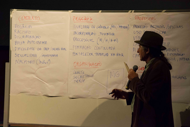One participant discussed the problem of internalized sexism and reproducing sexist discourses. Another discussed the importance of sharing the responsibility of parenting, and a need to for women waste pickers to see themselves as businesspeople — not victims. The importance of solidarity among women as well as with men was discussed.