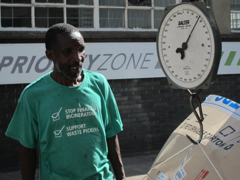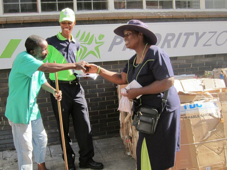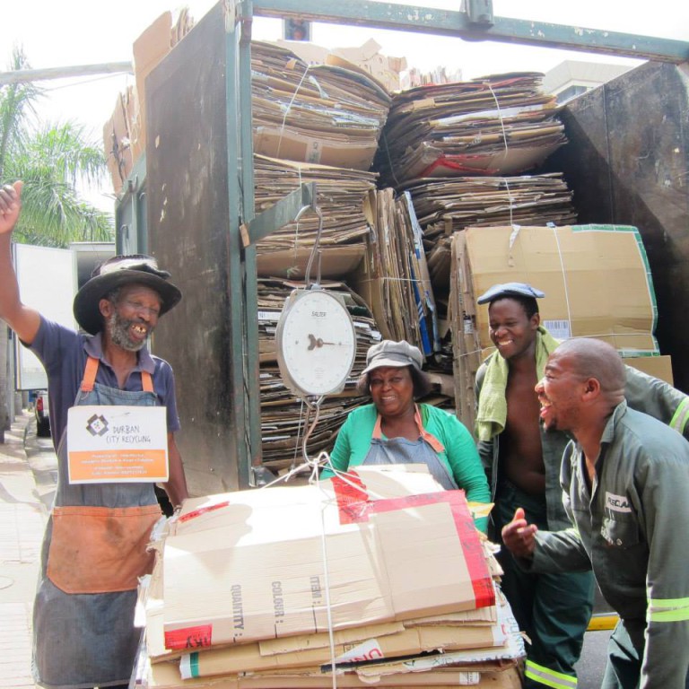 Afrika and a group of up to 15 men and women cardboard recyclers were located around the landmark International Convention Centre (ICC) and Workshop Shopping Centre precinct making a living by collecting and selling cardboard recyclables generated by the industrial, retail and office activities there. Afrika emerged as a well-respected, liked and established informal recycler amongst his fellow recyclers and by the surrounding businesses – and was naturally elected as the lead representative of the informal recyclers in the area.