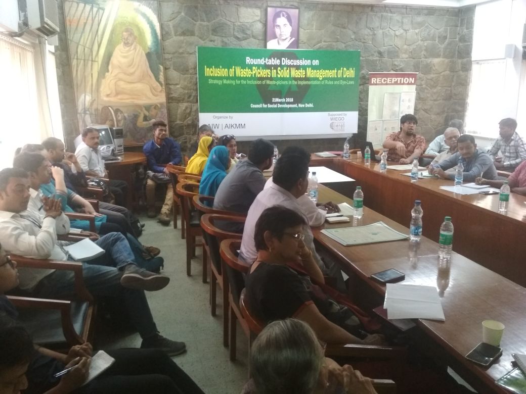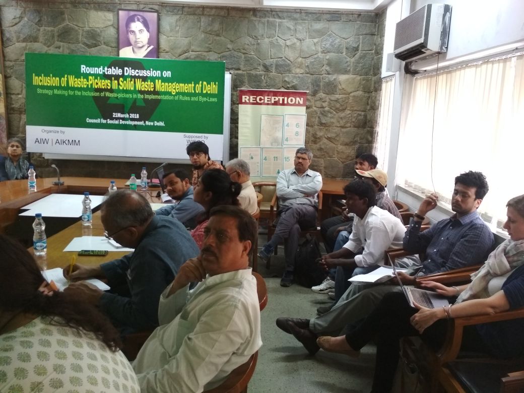 On March 21, 2018 took place a round-table to discuss the inclusion of waste pickers in Solid Waste Management of Delhi organized by​ the Alliance of Indian Wastepickers (AIW), All India Kabadi Majdoor Mahasangh (AIKMM) and WIEGO at the Council for Social Development, New Delhi, India.