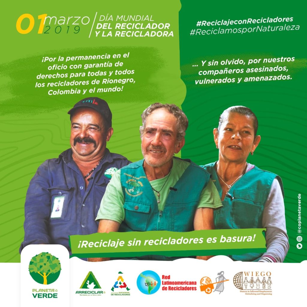 Desde la Cooperativa Planeta verde en Rionegro, Colombia, conmemoran el día internacional del reciclador y la recicladora el 1º de marzo de 2019.