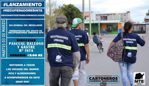 Tuesday, March 3rd at 6:00 pm, presenting the body of Recuperadores Urbanos de Barrio INTA (neighborhood Urban recuperators)  and welcoming waste pickers who have spent years in our city working in this activity, spreading the cardboard work and its socio-environmental benefits. More information in their Facebook announcement.