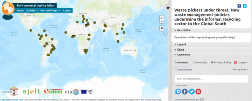 This year, on the occasion of the Global Waste Picker Day (March 1st), the Barcelona Research Group on Informal Recyclers – in collaboration with EnvJustice, the Global Alliance of Waste Pickers and WIEGO – releases a thematic map of socio-environmental conflicts in the Global South related to informal recyclers, whose livelihoods are put at greater risk due to a global policy shift towards waste management privatization that limits their access to recyclables. New waste management policies undermine the informal recycling sector in the Global South.