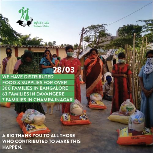 Hasiru Dala has so far been successful in its endeavour due to the support of citizens, partners, and donors.  Although a significant amount of funds was raised from individual donors directly in the form of cash, in several parts of Karnataka, farmers supported the organisation with their produce in the form of vegetables and grains. The organisation is leading the massive relief work by providing grocery kits and other types of relief material to the target groups. Soon the organisation is thinking of providing some minimum income support to the families of IWPs and those running DWCCs as most of them are battling malnutrition and starvation
