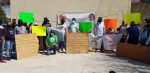 Celebration of the 1st of March 2021 of Bokk Diom in front of the police station in Mbeubeus: an hommage in memory of the Mebubeus dead waste pickers and press briefings to address requests to the authorities.