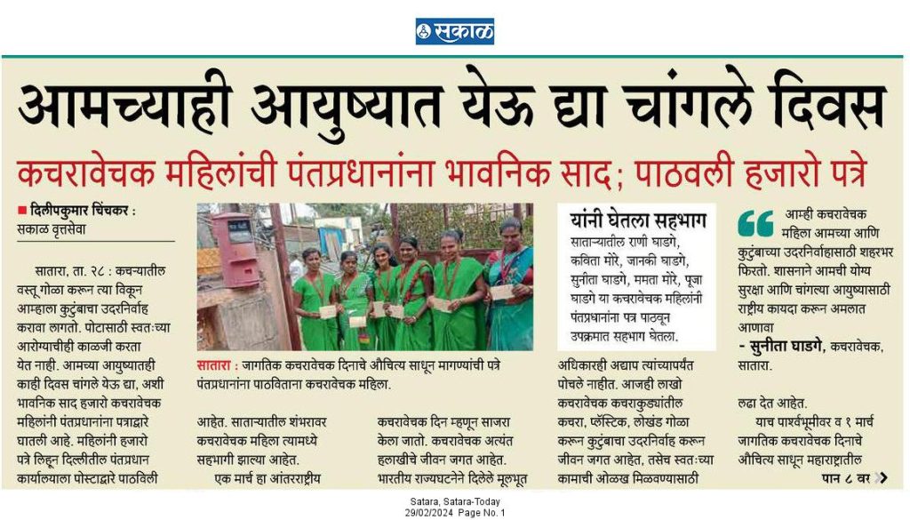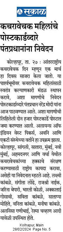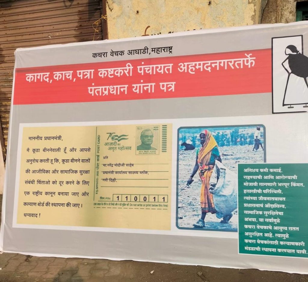 This March 1st, two thousand waste pickers from Kolhapur, Sangli, Satara, Mumbai, Navi Mumbai, Ahmednagar, and Wardha of Maharashtra took action by sending postcards to the Indian Prime Minister, advocating for a national law to protect waste pickers’ rights and the establishment of welfare boards to address their livelihood and social protection concerns.