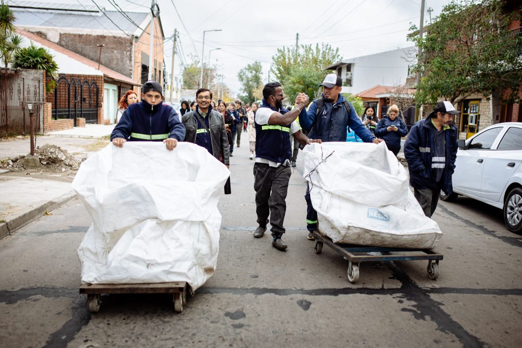 The day began with a working tour of the streets. “Our effort generates a model of care for the environment but also income. We are conquering the streets day by day and people are becoming more aware. I hope they fight for a law where every neighbor separates waste at home,” said Gerardo Serrano, a grassroots waste picker, during one of the visits. “We are still not recognized as workers, but we unite to fight. We do all this for our family.”