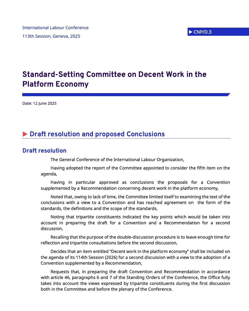 The second panel focused on a groundbreaking new Convention to regulate digital labor platforms. The ILO’s proposed legal framework introduces binding standards to protect platform workers—regardless of employment classification. IAWP voiced strong support for the Convention while calling for the inclusion of own-account workers and informal service providers. Kabir Arora, representing IAWP, stated: “We welcome the decision of the ILO’s members to establish a Convention that champions the rights of platform economy workers. We are eager for this convention to prioritize the needs of our own account workers and ensure that the platform economy uplifts rather than displaces those who provide similar services outside of this system.”