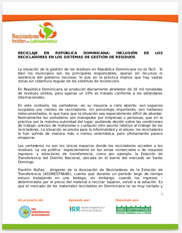 Recycling in the Dominican Republic: Inclusion of waste pickers in waste management systems April 27, 2016