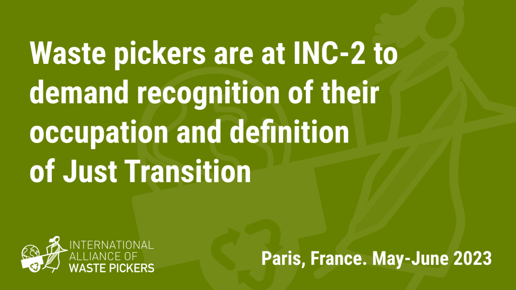 The International Alliance of Waste Pickers’ participates as an active voice in the UNEA Plastics Treaty process. We ask for the recognition and direct participation in national laws and regulations related to plastic waste management. We also call for fair compensation, a just transition to new systems, reduced use of toxic substances in plastics, and the implementation of Extended Producer Responsibility norms. These measures aim to acknowledge waste pickers’ historical contributions, protect their rights, and promote effective and sustainable plastic waste management practices.